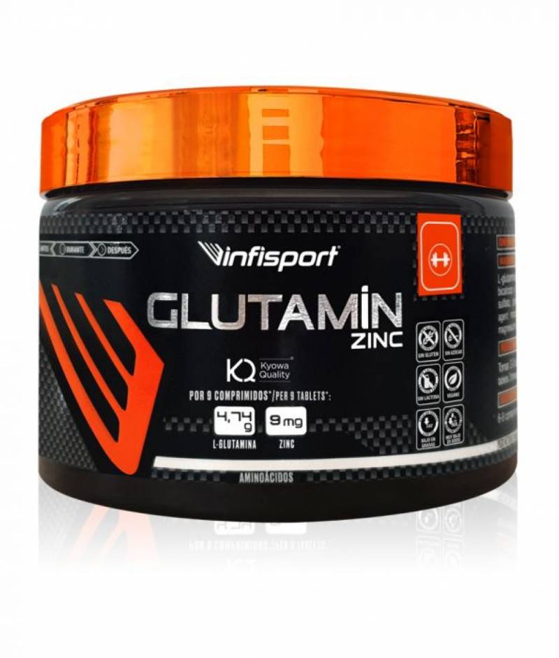 GLUTAMIN ZINC ES UN COMPLEMENTO ALIMENTICIO A BASE DE L-GLUTAMINA (KYOWA QUALITY®), ZINC Y VITAMINA B6 EN FORMATO POLVO Y COMPRIMIDO.